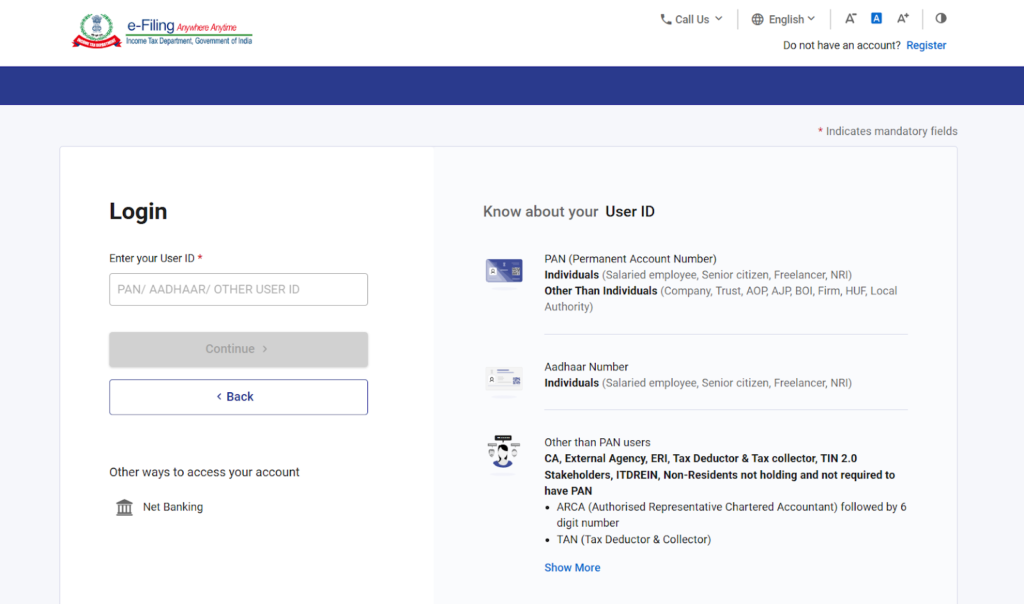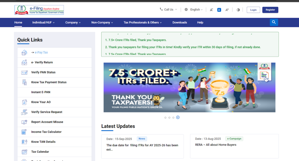 Step 1: Visit the Income Tax e-filing portal for Aadhaar-PAN linking.